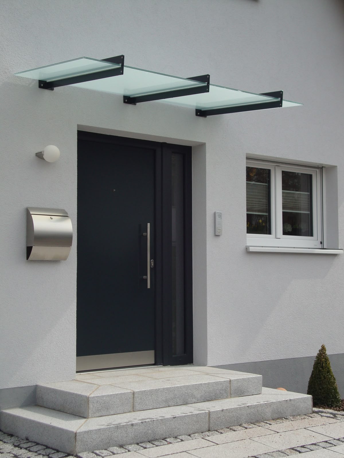 Moderna ulazna nadstresnica sa celicnom konstrukcijom i bocnim panelima