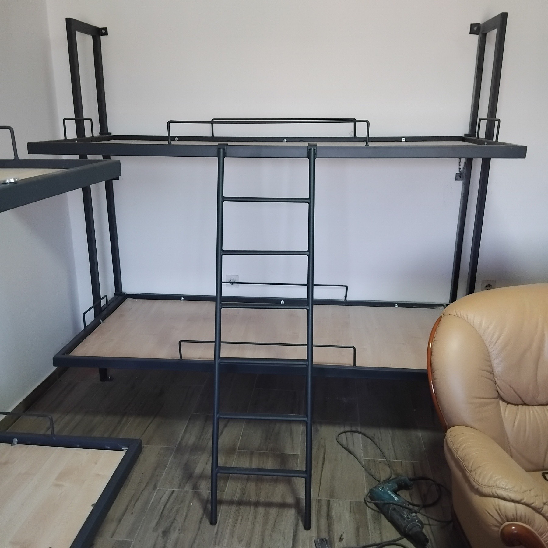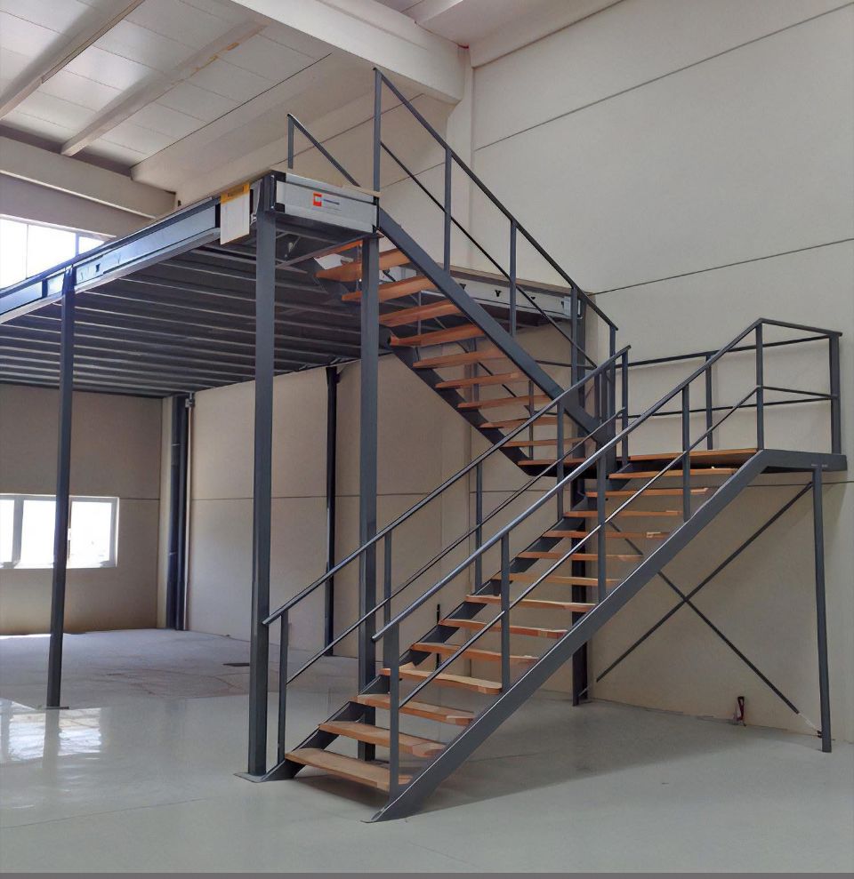 Stabilne metalne stepenice sa čeličnom konstrukcijom i drvenim gazištima za industrijske prostore