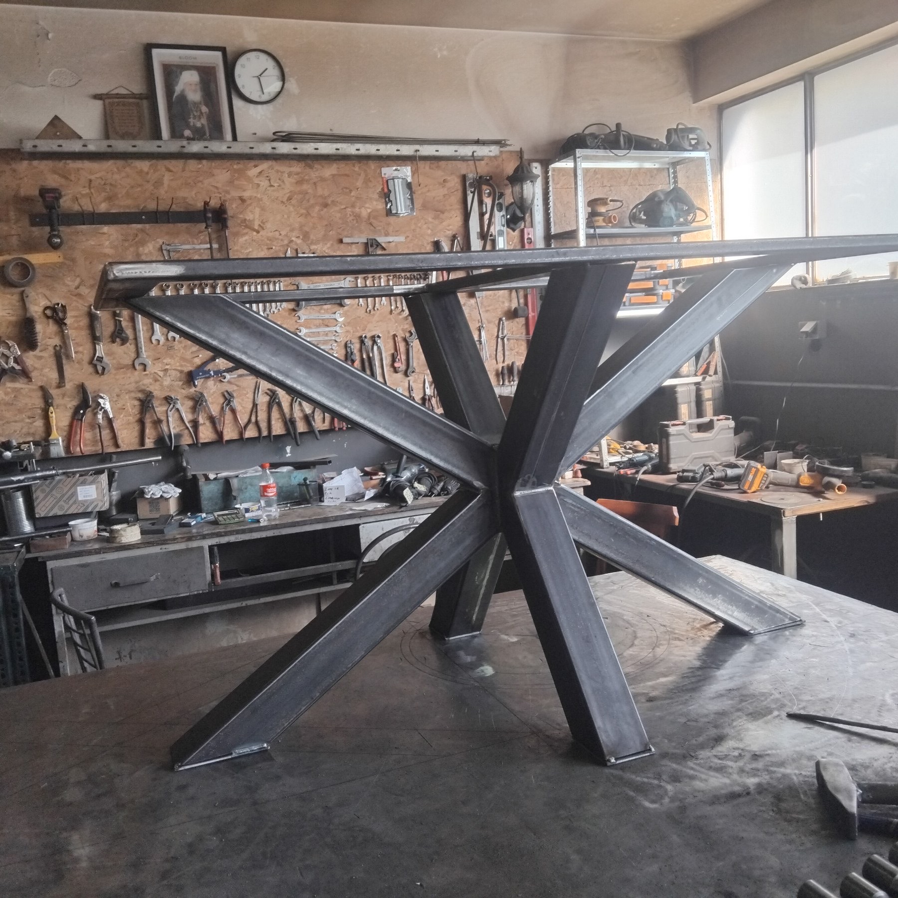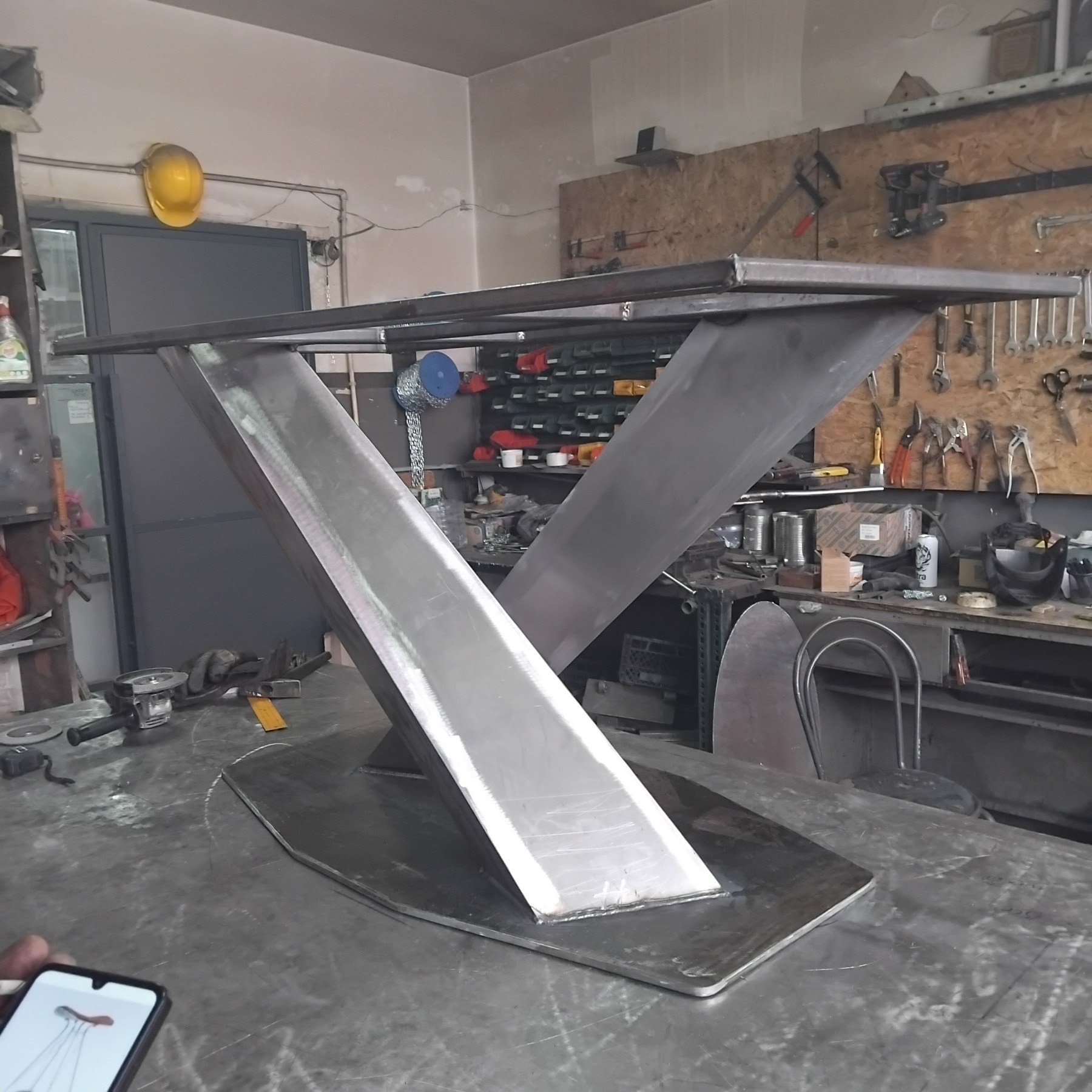 Robustan sto sa geometrijskom metalnom konstrukcijom za spoljašnju upotrebu