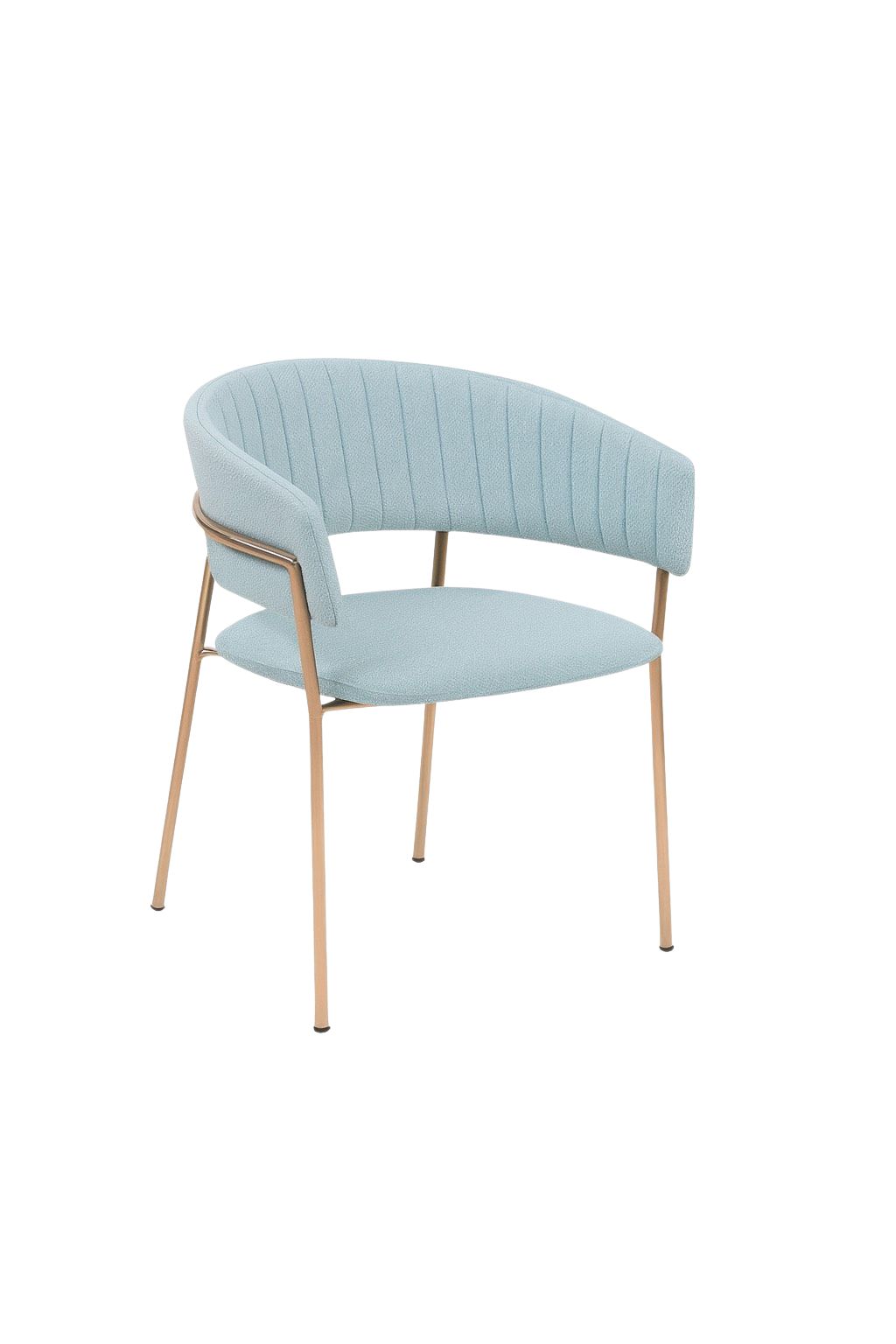 Moderna stolica sa stabilnim metalnim ramom i udobnim tapaciranim sedistem
