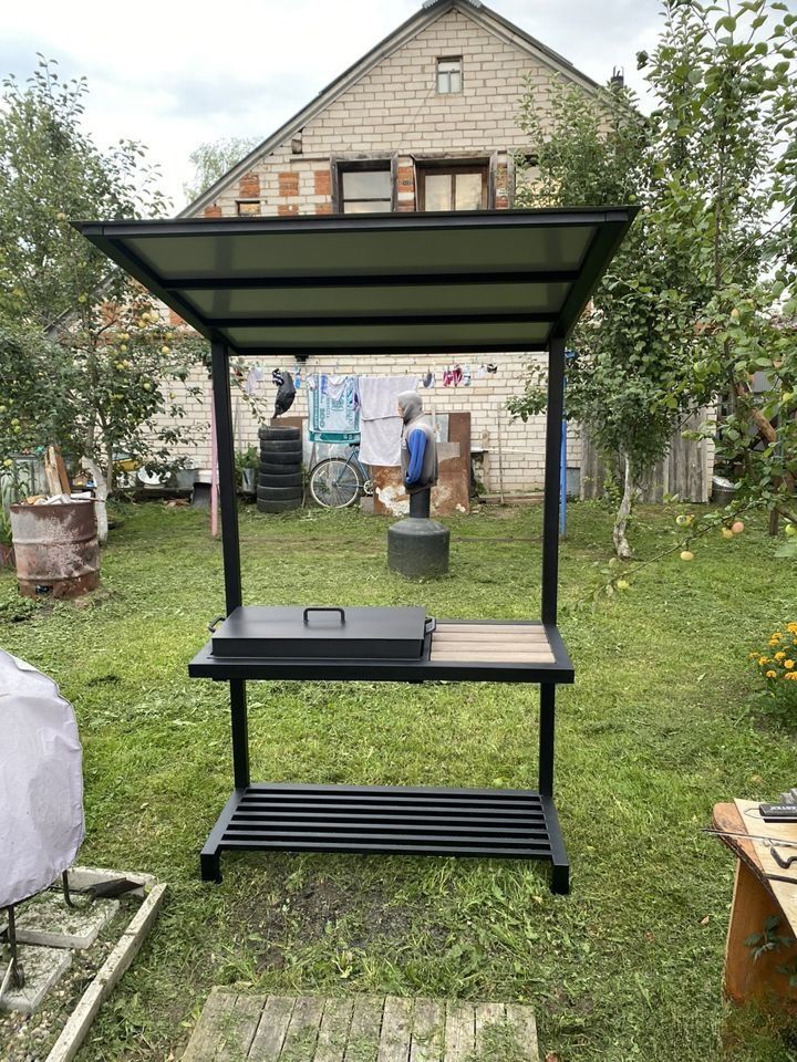 Masivan roštilj sa krovom i drvenim policama za profesionalnu upotrebu